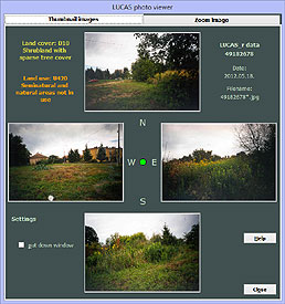 LUCAS photo viewer program displays the main data and field photos (if any) of the LUCAS point last selected in InterChange or InterCheck program. This software is built in part of InterChange and InterCheck. It can use LUCAS data only of a specific format and JPG files named according to the naming convention specified in the appropriate LUCAS manuals. LUCAS data must be in ArcView shape file format.